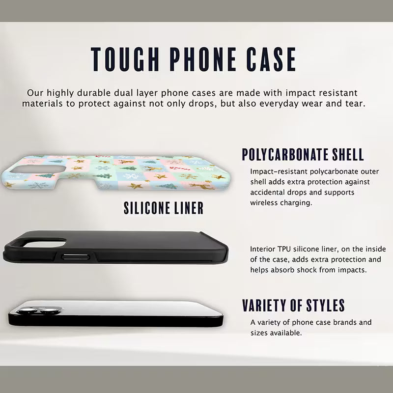 Winter Mosaic combines soft pastel tones and festive-inspired icons with a durable dual-layer construction that protects your iPhone from everyday drops and scratches. Slim, comfortable, and visually striking, it’s designed to stand out while keeping your phone protected — the perfect balance between charm, quality, and modern elegance.